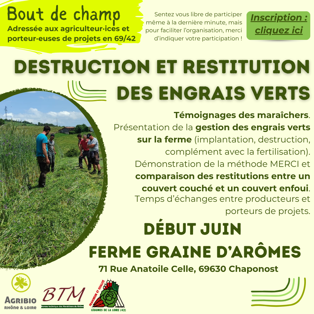 Avec Pauline Bonhomme et Alice Chabagno, d’AGRIBIO Rhône&Loire (pauline.bonhomme@aurabio.org ; a.chabagno@aurabio.org), Claire Ducourouble et Emma Albertelli, conseillères maraîchage à la Chambre d’agriculture du Rhône (emma.albertelli@rhone.chambagri.fr; claire.ducourouble@rhone.chambagri.fr), Quentin Marliac, conseiller maraîchage de la Chambre d’Agriculture de la Loire (quentin.marliac@loire.chambagri.fr).